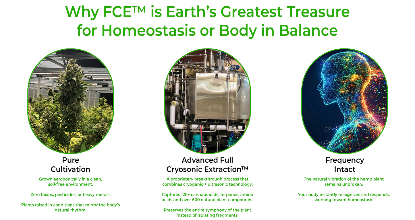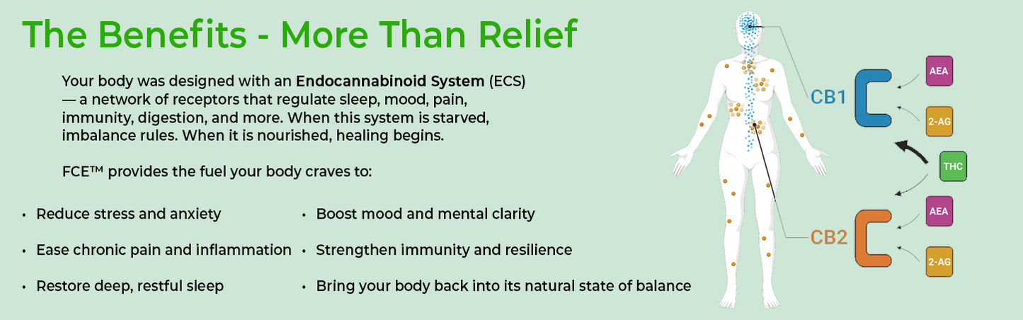 FCE™…engineered for the ECS.    The Endocannabinoid System (ECS) is the master controller for all of the body's systems. FCE™...